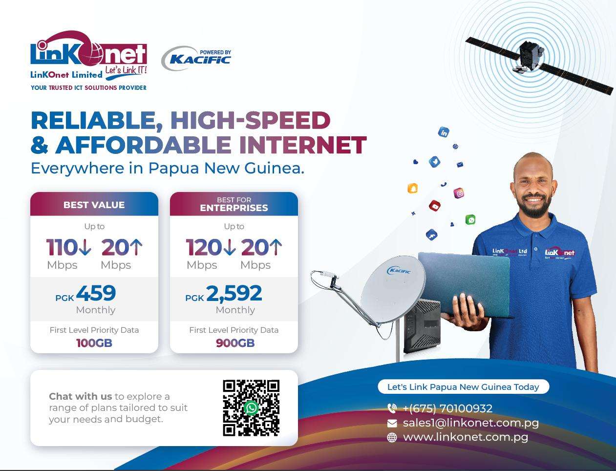 We are delighted to announce LinkOnet’s partnership with Kacific Broadband Limited in the distribution of Kacific’s ultra-speed satellite broadband services in Papua New Guinea.