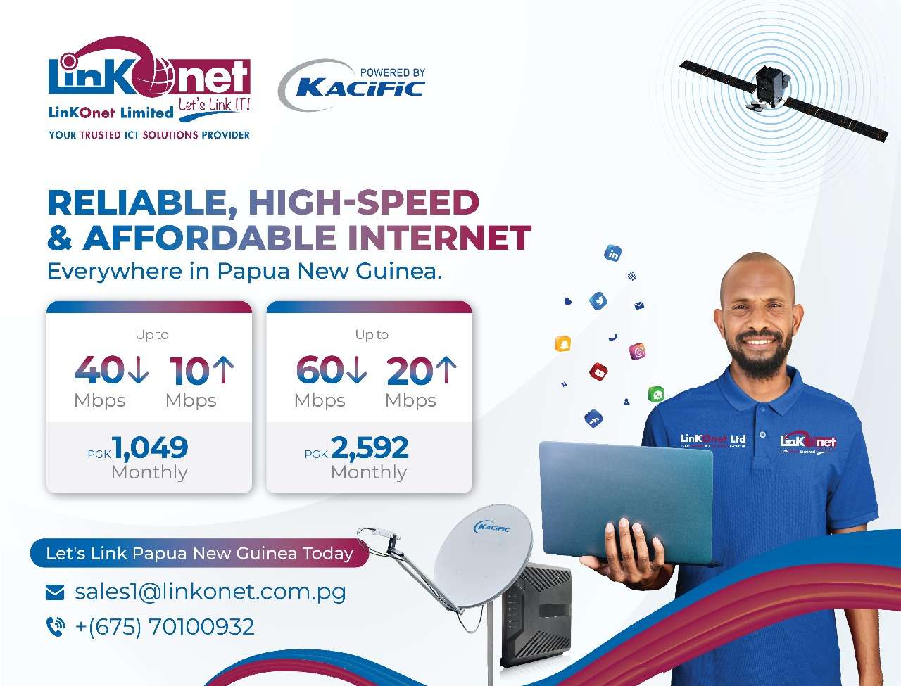 We are delighted to announce Linkonet’s partnership with Kacific Broadband Limited in the distribution of Kacific’s ultra-speed satellite broadband services in Papua New Guinea.